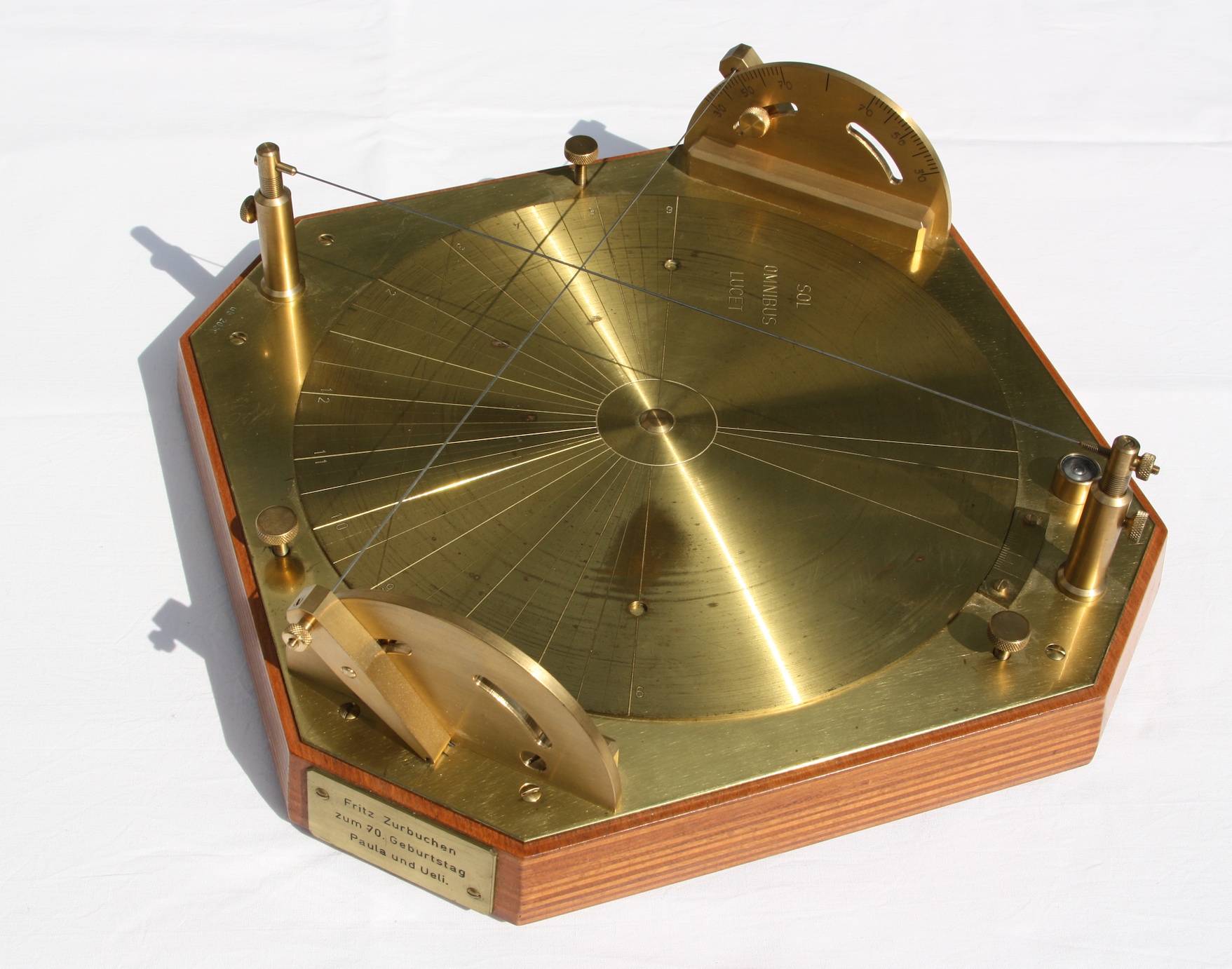 ursprüngliche Bauform mit höhenverstellbarem Nord-Süd-Draht angezeigte Zeit: etwa 15:08