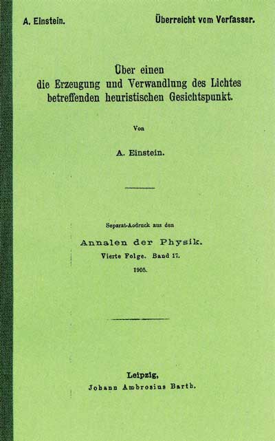 Auch am anderen grossen Riss, der sich mit Planck’s Arbeit zur Strahlung auftat, hat Einstein 1905 erfolgreich gearbeitet. Wie schon in A4 erwähnt hat er die entsprechende Arbeit “Über einen die Erzeugung und Verwandlung des Lichtes betreffenden heuristischen Gesichtspunkt“ [12-197ff] in einem Brief an Conrad Habicht selber als ‘sehr revolutionär’ bezeichnet.