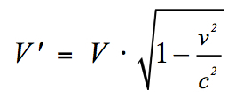 Mit gestrichenen Werten bezeichnen wir wie gesagt immer was ein Beobachter misst, der sich mit der Relativgeschwindigkeit v jin x-Richtung am betrachteten Objekt vorbeibewegt, während die ungestrichenen Werte von einem Beobachter stammen, der inbezug auf das untersuchte Ensemble ruht. Die ungestrichenen Werte sind also identisch mit den Eigenwerten. Die Volumentransformation ergibt sich aus der 'Längenkontraktion', von der ja nur die Richtung der Relativbewegung betroffen ist. Die Gestalt und die Orientierung des Volumens spielen dabei keine Rolle.
